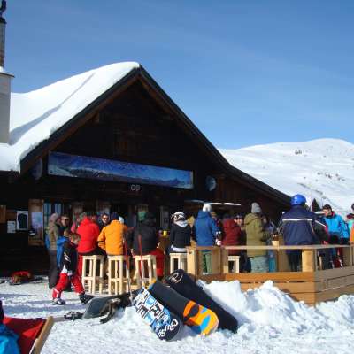 Die Älplibar befindet sich bei der Alphütte Sarneralp auf rund 1'950 Meter über Meer und liegt direkt an der Skipiste.