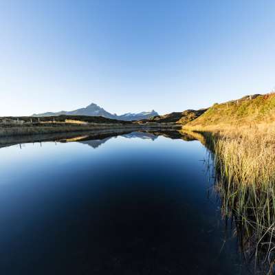 Der Bischolsee ist ein echtes Postkartenmotiv und begeistert mit der Spiegelung des majestätischen Piz Beverin.