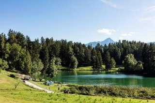 Die Feuerstelle liegt beim Canovasee. Dieser lädt im Sommer zum Baden ein und ist im Sommer weit über 20 Grad warm.
