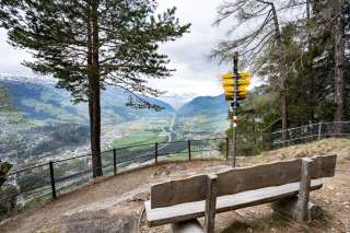 Die Feuerstelle befindet sich unmittelbar hinter dem Aussichtspunkt Crap Carschenna und ist in einer Waldlichtung gelegen.