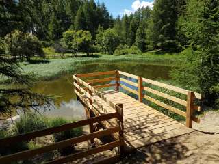 Auf den vielen Sitz- und sogar Liegemöglichkeiten kann man die Sonnenstrahlen geniessen. Wird es zu warm, gibt es auch einige schattenspendende Lärchen. Im See darf zwar nicht gebadet werden, aber vom Steg aus kann man die Tiere gut beobachten. Bei der Feuerstelle befindet sich eine kleine, leere Hütte. Zudem gibt es eine gemütliche, geschwungene Holzliege.