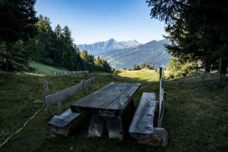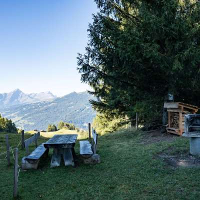 Die aussichtsreiche Feuerstelle befindet sich ca. 15 Minuten zu Fuss ab der Bergstation Luftseilbahn Rhäzüns-Feldis.