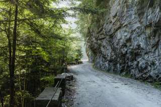 Die Wanderung beginnt in Thusis und führt am Nordportal des Sicherheitsstollens des Crapteigtunnels vorbei. Dort lässt der instand gestellte Bündnerzaun mit Steinstelen erahnen, dass hier ein besonderes Bauwerk beginnt. Vorbei am ehemaligen Wegmachergebäude (erbaut vor 1890) geht die Wanderung sanft bergauf. Den Brunnen und Gedenkstein an denen wir vorbeikommen, erläutern wir, und erreichen die Stelle vor dem Känzeli, die in den Jahren 2020-2023 baulich saniert wurde. Das Känzeli mit Blick in die Tiefe und nach Hohen Rätien zeigt uns, dass die Ingenieure eine Strasse erbauen wollten, die schön und landschaftlich reizvoll sein sollte und die Deutschland und Italien auf beinahe kürzestem Weg verbindet, nicht nur für Warentransporte, sondern auch für Reisende. Nach dem Känzeli durchschreiten wir einen kurzen Tunnel – für damals eine Sensation. Nach dem Tunnel führt die Strasse eingeschnitten in den Felsen entlang der senkrechten hohen Schluchtwand, die einem noch heute erschaudern lässt, nach Rongellen.