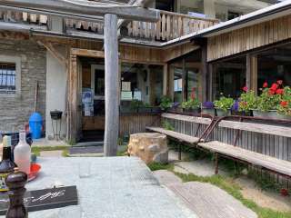 Das Restaurant befindet sich auf der italienischen Seite der Staumauer Valle di Lei.