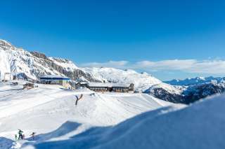 Die dazugehörige Aussenbar ist der ideale Ort, um einen aktiven Schneesporttag entspannt ausklingen zu lassen oder die alpine Natur auf einer der gemütlichen Sonnenliegen zu geniessen.