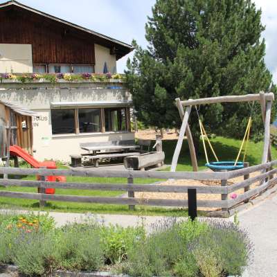 Der Spielplatz befindet sich beim Gemeindehaus Urmein.