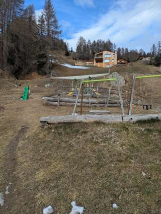 Der Spielplatz befindet sich direkt beim grossen Parkplatz in Mathon, neben dem Feuerwehrdepot.